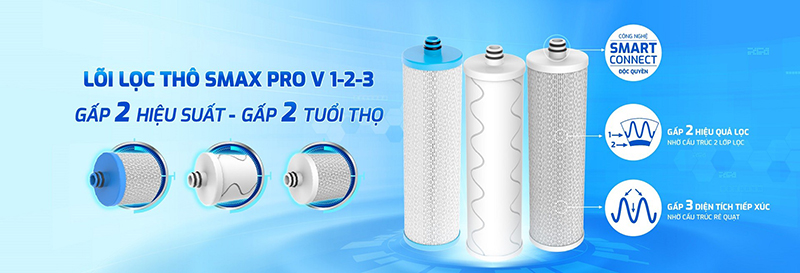 Tiên phong công nghệ lọc hiệu quả cao giúp An tâm toàn diện cho sức khỏe gia đình. Karofi mang đến hệ lõi lọc thô Smax Pro V 1,2,3 hoàn toàn mới. Đây là giải pháp tối ưu nhất giúp tăng hiệu quả lọc và tuổi thọ cho lõi, giảm chi phí thay lõi định kỳ.