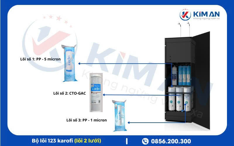 Kim An hiện là Kênh phân phối lớn hàng đầu về Lõi lọc thô 123 chính hãng Karofi. Nếu quý khách có nhu cầu mua máy hoặc tìm hiểu thêm về Bộ Lõi Lọc Thô 123 Karofi (Lõi 2 OCB Nhỏ) lọc này, xin quý khách liên hệ: