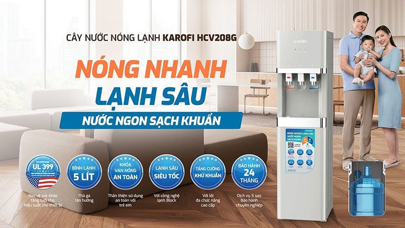 CÂY NƯỚC NÓNG LẠNH HÚT BÌNH KAROFI HCV208G – TIỆN LỢI, SANG TRỌNG, NƯỚC SẠCH MỖI NGÀY