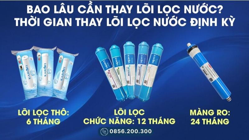 Thời gian thay lõi lọc nước Karofi định kỳ là bao lâu?