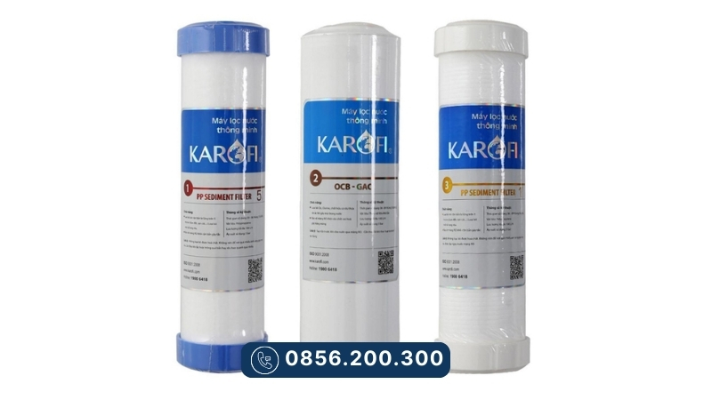 Ba lõi lọc thô số 1, 2, 3 có nhiệm vụ loại bỏ cặn bẩn và tạp chất lớn. Thời gian thay lõi lọc nước Karofi 1 2 3 thường từ 3 đến 6 tháng tùy nguồn nước.