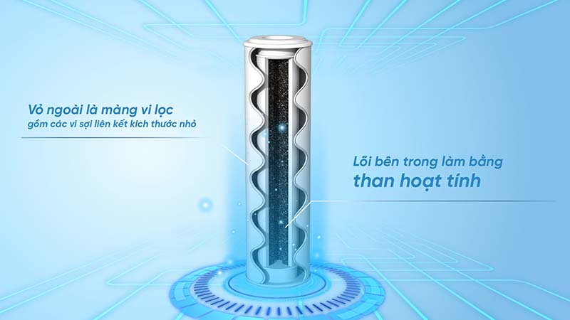 Cụ thể, màng vi lọc ở lớp ngoài giúp loại bỏ các tạp chất, cặn bẩn, rong rêu,… Bên trong là than hoạt tính giúp nâng cao xử lý kép cả các chất hữu cơ, chất gây mùi, chất tạo màu, mùi clo có trong nước sinh hoạt hàng ngày.