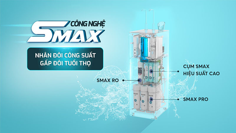 | Các lõi chức năng | Hệ Smax hiệu suất cao 6 lõi gồm: Khoáng đá; Tourmaline; ORP Alkaline; Hydrogen Plus;T33-GAC; Nano Silver Plus |