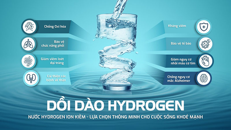 Nước hydrogen là nước tinh khiết được bổ sung thêm các phân tử hydro ( H_2) hòa tan trong nước. Nguồn nước dồi dào Hydrogen ion kiềm giúp loại bỏ gốc tự do và trung hoà axit trong cơ thể: tăng cường sức khỏe, cải thiện hệ tiêu hoá, hỗ trợ ngăn ngừa lão hoá.