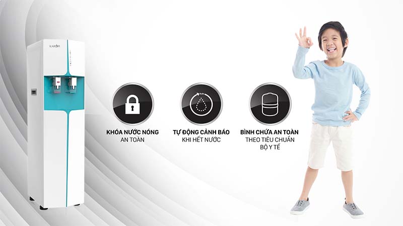 - Tự động ngắt chức năng làm nóng khi hết nước tank chứa, bạo vệ an toàn chống cháy nổ.
