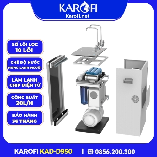 Máy lọc nước nóng lạnh Karofi KAD - D950 có hệ thống 10 lõi lọc