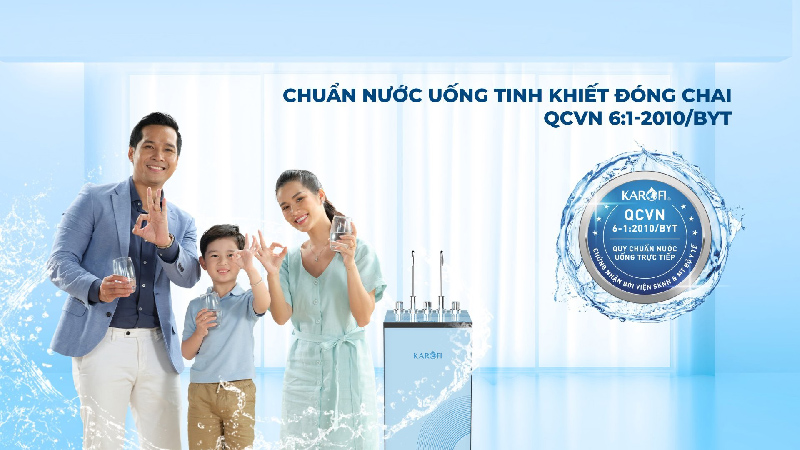 Nguồn nước sau lọc từ máy lọc nước nóng lạnh Karofi KAQ-D950S đạt chuẩn nước uống tinh khiết đóng chai QCVN 6-1:2010 BYT do Viện Sức khỏe nghề nghiệp & Môi trường – Bộ Y Tế công nhận theo quy trình của WHO.