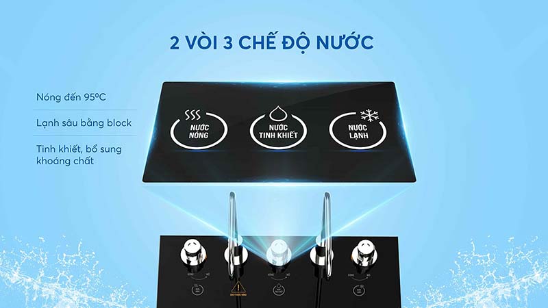 ♦ Máy lọc nước nóng lạnh Karofi KAD-I55 cung cấp 3 chế độ nước: nóng - lạnh - tinh khiết, đáp ứng nhu cầu đa dạng từ uống, pha chế đến sinh hoạt hàng ngày.