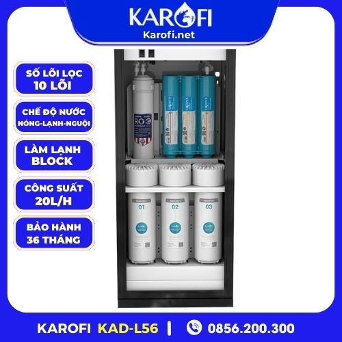 Máy lọc nước Karofi KAD-L56 được thiết kế 2 vòi với 3 chế độ nước nóng - lạnh - tinh khiết luôn sẵn sàng cho mọi nhu cầu sử dụng nước của cả gia đình.