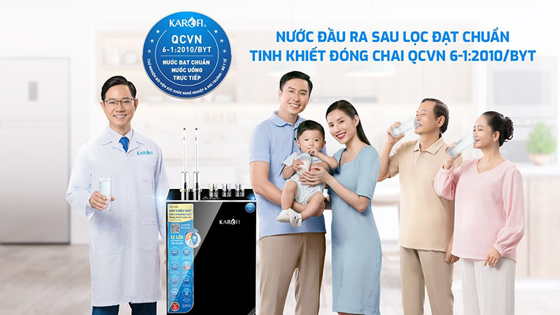 | Khuyến cáo điều kiện nước đầu vào | Nên sử dụng nguồn nước đầu vào đạt tiêu chuẩn nước sạch sinh hoạt QCVN 01-1:2018 để nước ra đạt để chất lượng nước đầu ra đạt QCVN 6-1:2010/BYT và đảm bảo tuổi thọ máy. Không dùng trực tiếp nguồn nước giếng khoan, nhiễm mặn, hoặc có độ cứng cao ... |