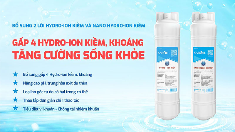 ♦ Nano Hydro-ion kiềm: Tích hợp 4 chức năng: Hydrogen, Ion kiềm, Khoáng, kháng khuẩn