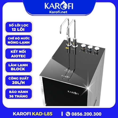 Máy lọc nước nóng lạnh Karofi KAD-L85 không chỉ là thiết bị lọc nước đơn thuần mà còn là giải pháp nước uống thông minh thế hệ mới. Sở hữu đến 12 lõi lọc công nghệ Smax, gấp 4 hàm lượng Hydro-ion kiềm, 3 chế độ nước nóng – lạnh – tinh khiết cùng thiết kế sang trọng, KAD-L85 mang đến chuẩn mực mới cho cuộc sống khỏe và tiện nghi tại gia.