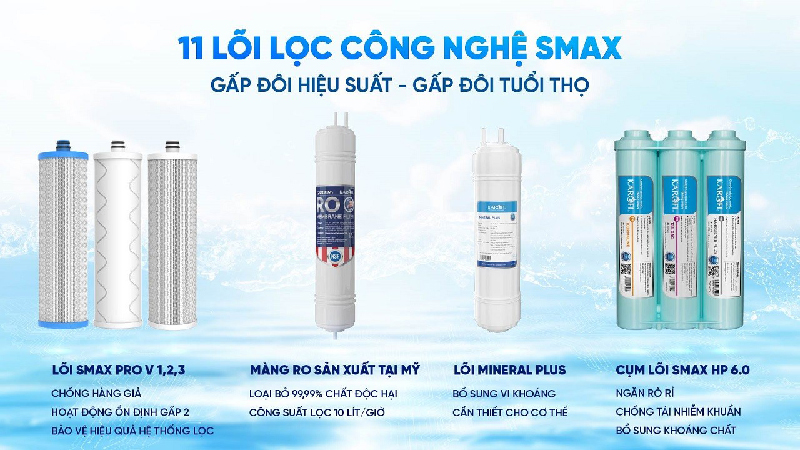 Vua lõi lọc – 11 lõi lọc công nghệ Smax thế hệ mới: Gấp đôi hiệu suất – Gấp đôi tuổi thọ