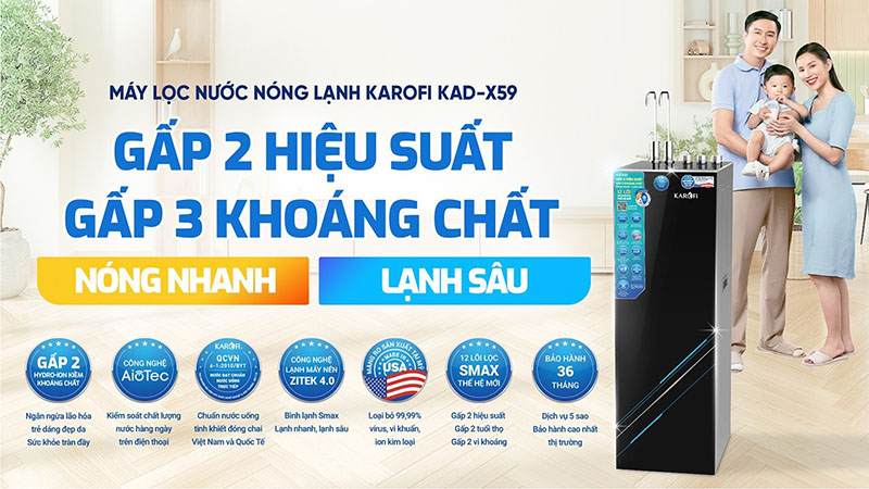 MÁY LỌC NƯỚC NÓNG LẠNH KAROFI KAD-X59 – GẤP 2 HIỆU SUẤT, DỒI DÀO KHOÁNG CHẤT, NÓNG NHANH – LẠNH SÂU
