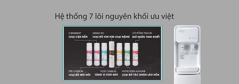 ♦ Hệ thống 7 lõi lọc nguyên khối loại bỏ 99,99% vi khuẩn, độc tố