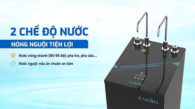 Công nghệ nóng nhanh cho nhiệt độ nước lên tới 85-95 độ C, thỏa mãn mọi nhu cầu: pha sữa, pha trà, mì gói, cafe... Chỉ cần vặn vòi, bạn sẽ có nước nóng sử dụng ngay lập tức mà không cần phải chờ đợi hay đun nước lỉnh kỉnh.