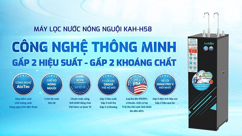 MÁY LỌC NƯỚC NÓNG NGUỘI KAH-H58: CÔNG NGHỆ THÔNG MINH - GẤP 2 HIỆU SUẤT - GẤP 2 KHOÁNG CHẤT