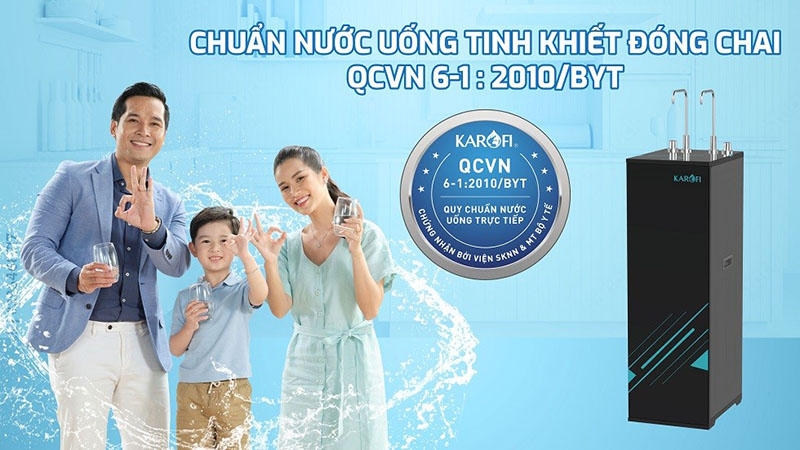 Duy nhất tại Karofi, nước sau lọc đạt chuẩn tinh khiết đóng chai QCVN 6:1-2010/BYT, do Viện Sức Khỏe Nghề Nghiệp Và Môi Trường công nhận.