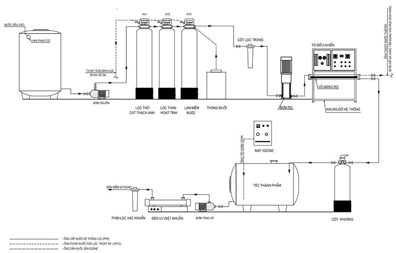 Nước đầu ra đạt chuẩn nước uống đóng chai QCVN 6-1:2010/BYT.