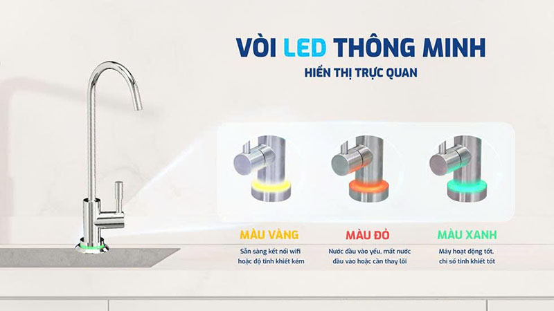 | Hiển thị độ nước sạch của nước | Có trên vòi LED |