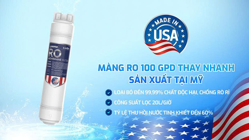 | Màng lọc | Màng RO 100 GPD thay nhanh sản xuất tại Mỹ |