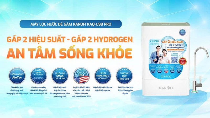 MÁY LỌC NƯỚC RO KAROFI KAQ-U98 PRO – GẤP 2 HIỆU SUẤT, GẤP 2 HYDROGEN, SỐNG KHỎE MỖI NGÀY