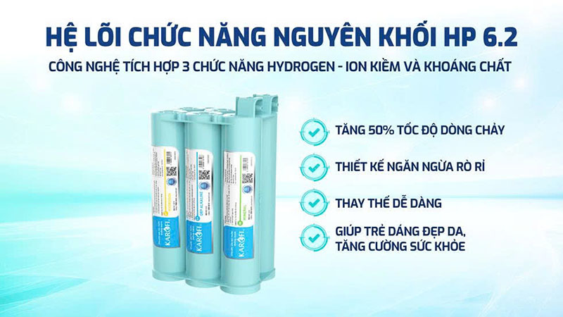 ♦ Lõi HP 6.2 bổ sung Hydrogen, ion kiềm, khoáng chất