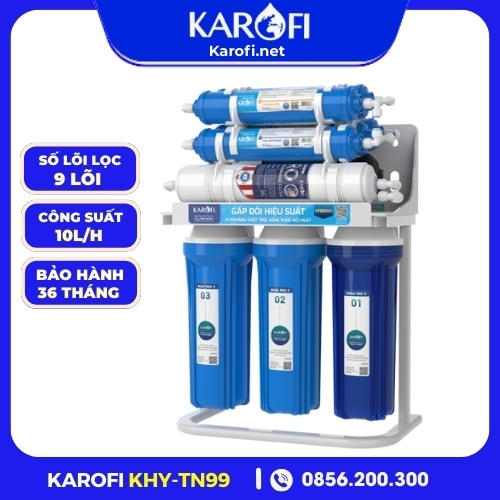 Máy lọc nước Karofi KHY-TN99 tạo nguồn nước tinh khiết chuẩn đóng chai, bổ sung hàm lượng lớn khoáng chất, Hydrogen dồi dào sẽ chăm sóc sức khỏe toàn diện cho bạn và cả gia đình 24/7.