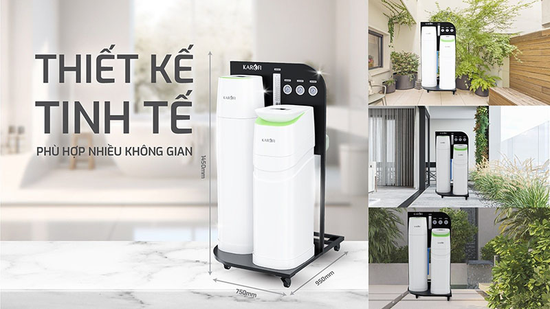Sở hữu thiết kế nguyên khối sang trọng, gọn gàng, thiết bị phù hợp với đa dạng không gian từ hiện đại đến cổ điển. Hệ bánh xe giúp di chuyển và lắp đặt tiện lợi.