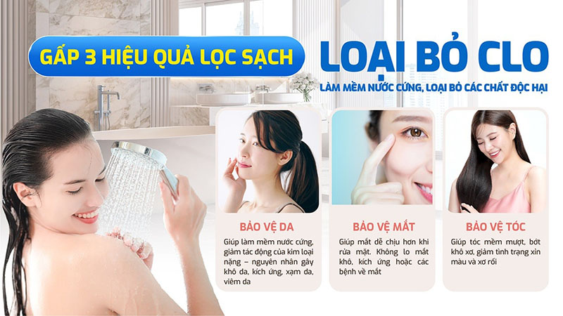 Tổ hợp này tạo ra hiệu quả lọc sạch gấp 3 lần, xử lý triệt để các vấn đề thường gặp của nguồn nước sinh hoạt như tạp chất, kim loại nặng, vi khuẩn, mùi clo, nước cứng...