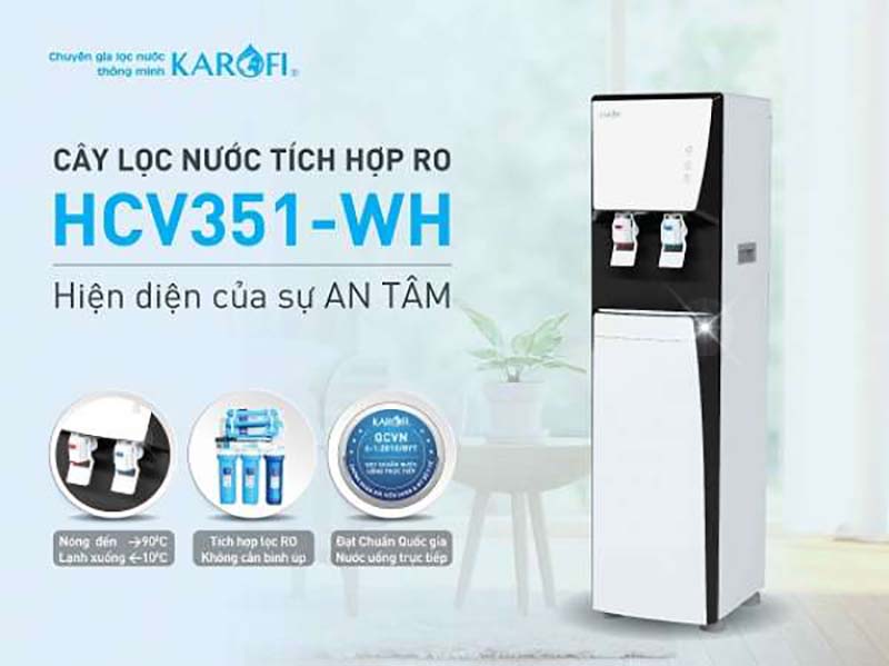 Cây lọc nước nóng lạnh HCV351-WH đạt chuẩn quốc gia, lọc nước đạt tiêu chuẩn nước tinh khiết uống trực tiếp không cần đun sôi, an toàn tuyệt đối sức khỏe người tiêu dùng. Thiết bị đảm bảo vận hành hiệu quả, tiết kiệm điện năng, hàng chính hãng Karofi.